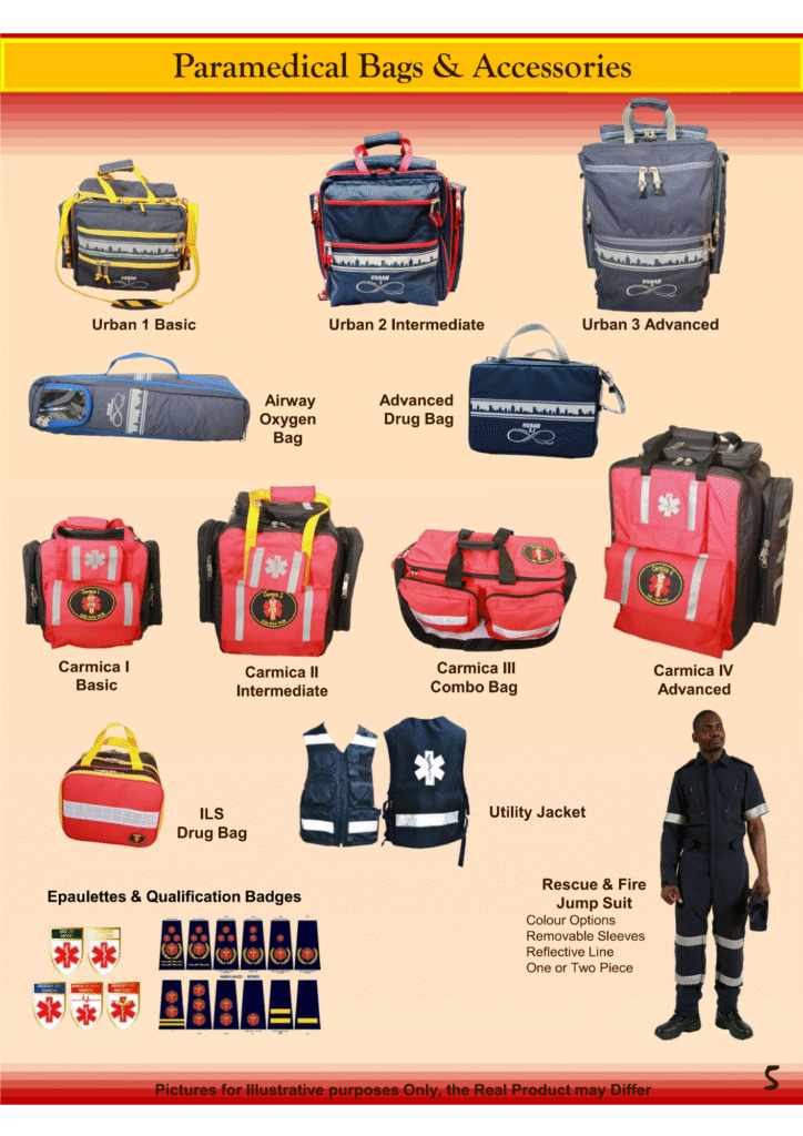 - Ambulance Equipment, Stretchers, Paramedical Bags, Flight suit, etc